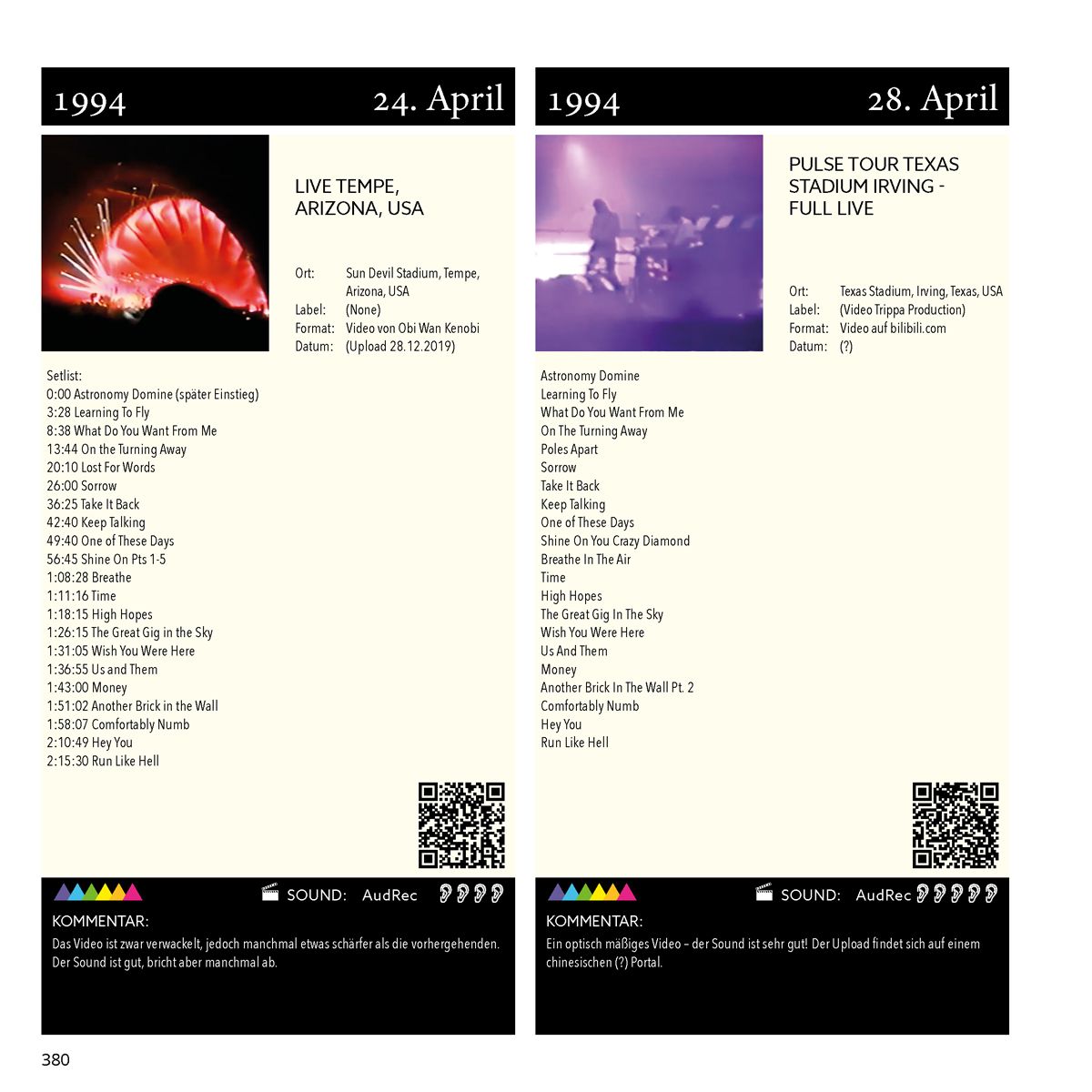 Entlang der Konzert- und Gig-Liste (siehe IN THE FLESH) entstand dieses Verzeichnis der in/offiziell veröffentlichten Aufnahmen und Mitschnitte – mit Anspruch auf Fast-Vollständigkeit. D.h. sofern es einen Mitschnitt eines Gigs oder Konzerts gibt und diese im WWW veröffentlicht wurden, sind sie hier zu finden und via QR-Code abzurufen.