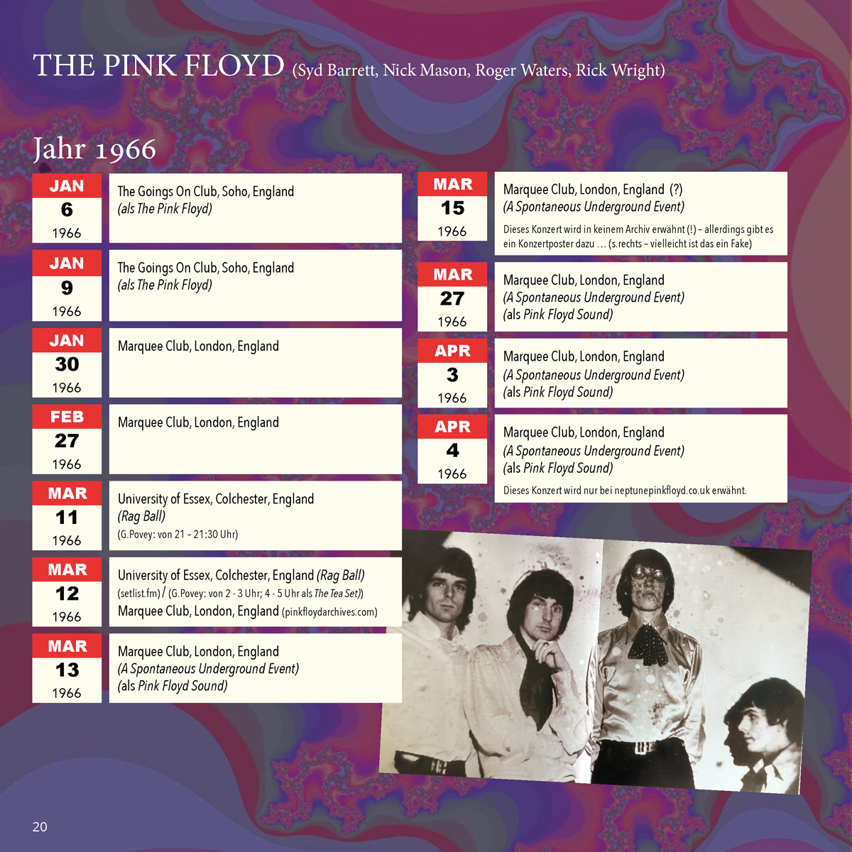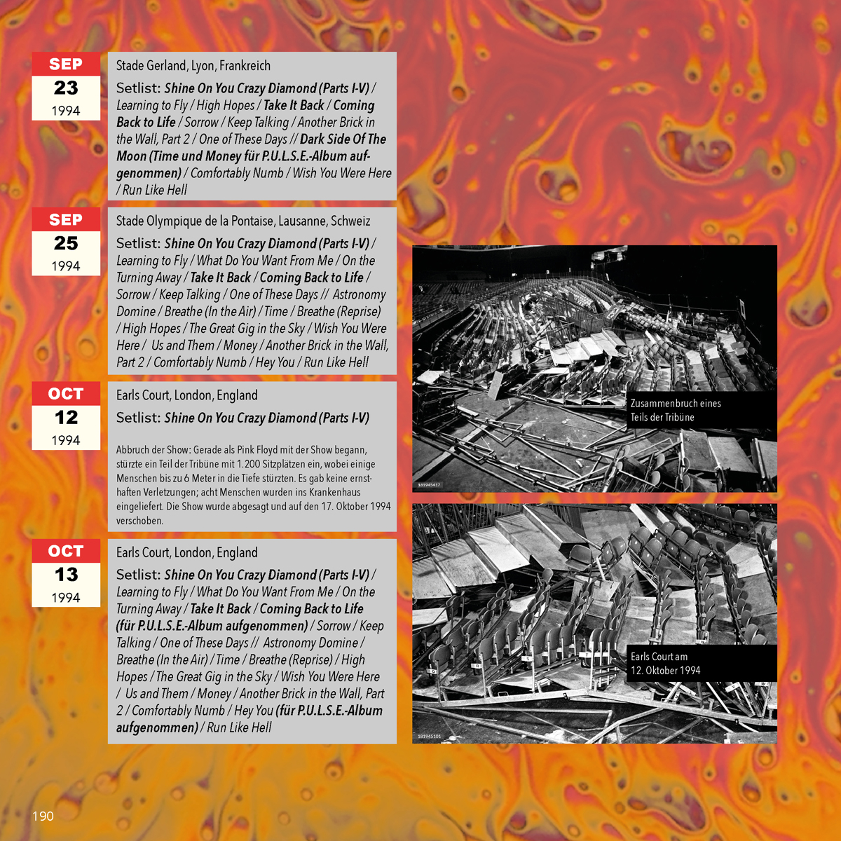 Ergänzt um die jeweiligen Setlists ist dieses Nachschlagewerk die Basis für Band Vier des Projekts: THE ECHO OF A DISTANT TIME – UN/OFFICIALLY RECORDED HISTORY OF PINK FLOYD.